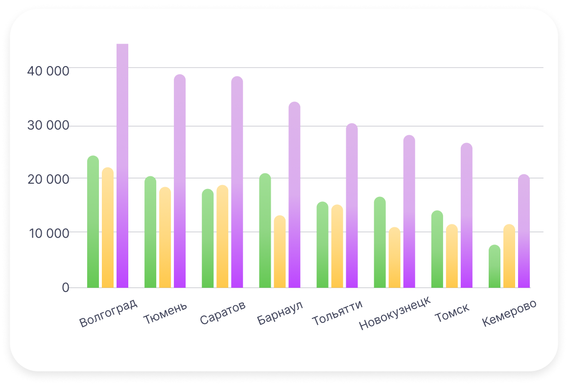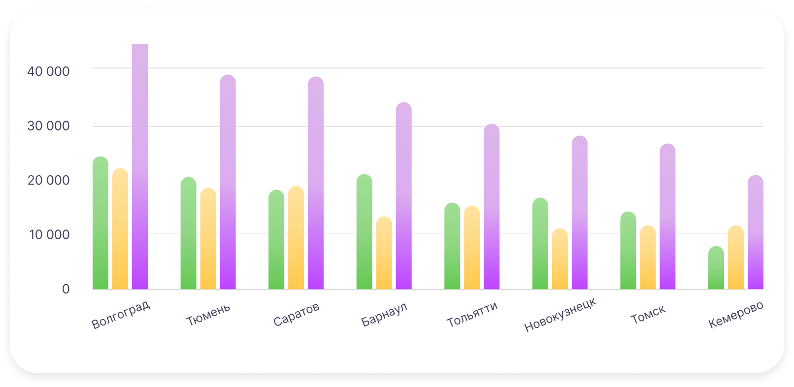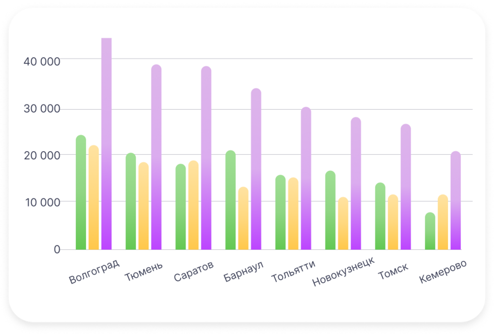 | Нижний Новгород | 30530 | 27066 | 60775 |