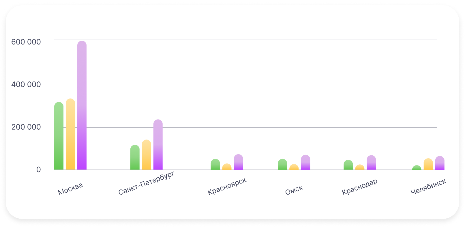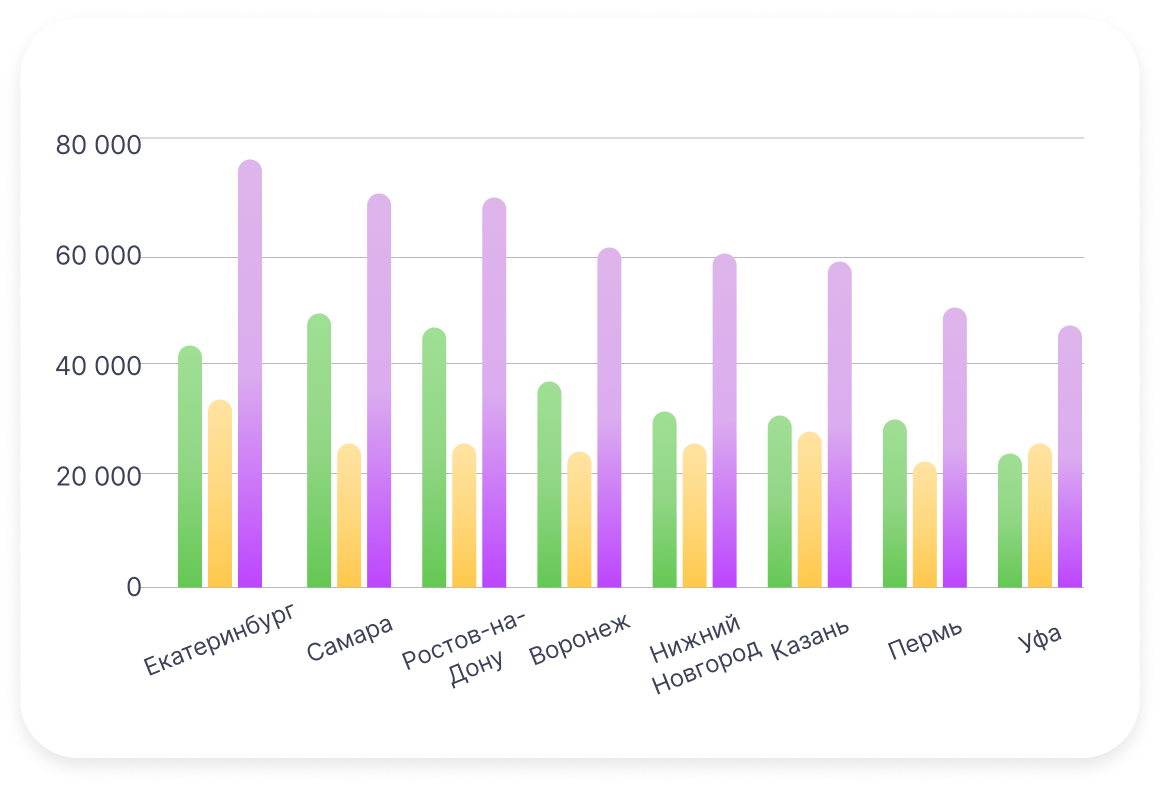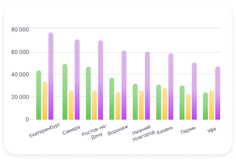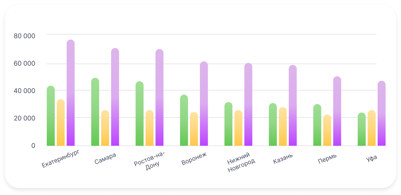 | Екатеринбург | 42715 | 34034 | 76749 |